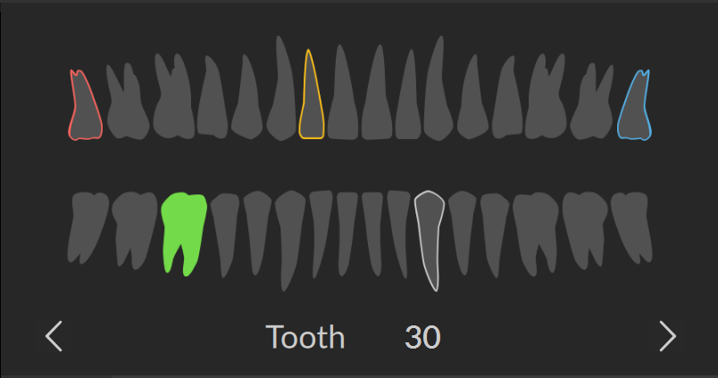 arrow key to go to the previous tooth or next tooth. Alternatively, click