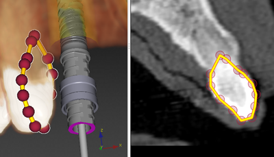Click another position on the object. A second gray sphere appears and a connecting yellow line is drawn. This default line color can be changed using the right-click pop-up menu of the line annotation.