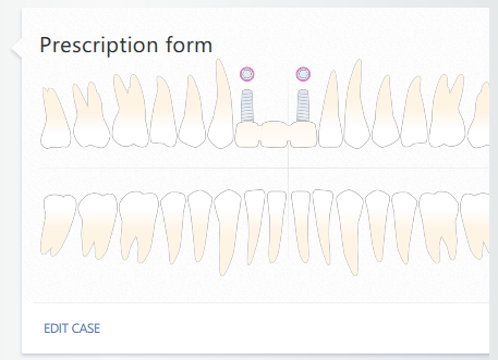 For an existing restoration request case, the prescription form is shown. To edit the case, click Edit case. |